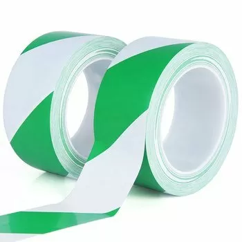 Зелено-белая оградительная лента используется для обозначения безопасных зон, мест, где разрешен проход, или зон таможенного контроля.