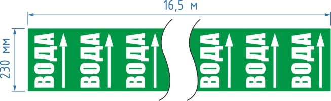 Опознавательная маркировочная лента зеленая с белой надписью Вода и стрелкой 230мм x 16,5м