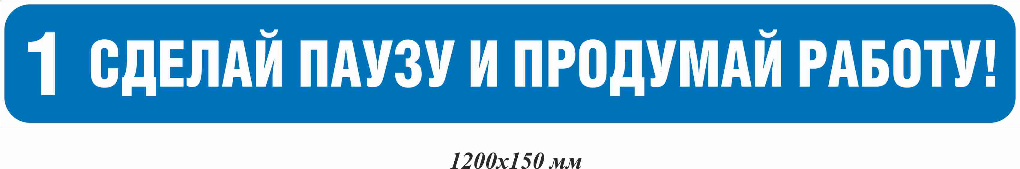 Наклейка информационная на ступени 2, Сделай паузу и продумай работу! 1200х150 мм, материал пленка ПВХ самоклеящаяся, форма прямоугольная края закругленные, цвет белый/синийАрт. IT-1200x150-PS1