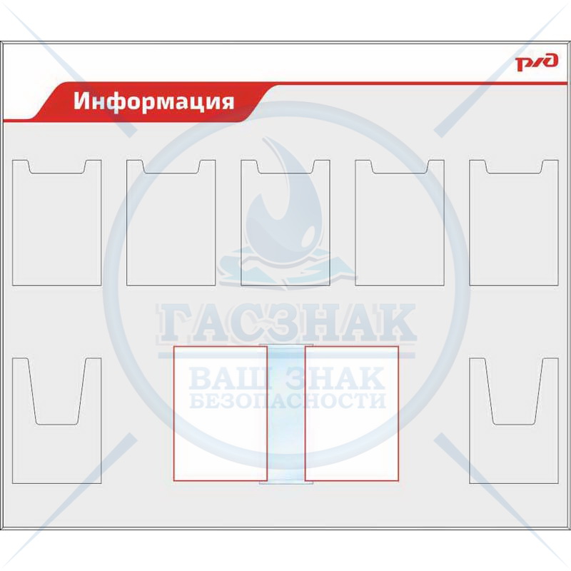 Стенд Работы на высоте для ОАО РЖД, 4 плаката А3, 2 объемных кармана А4 (1050х1205; Пластик ПВХ 4 мм; Алюминиевый профиль)
