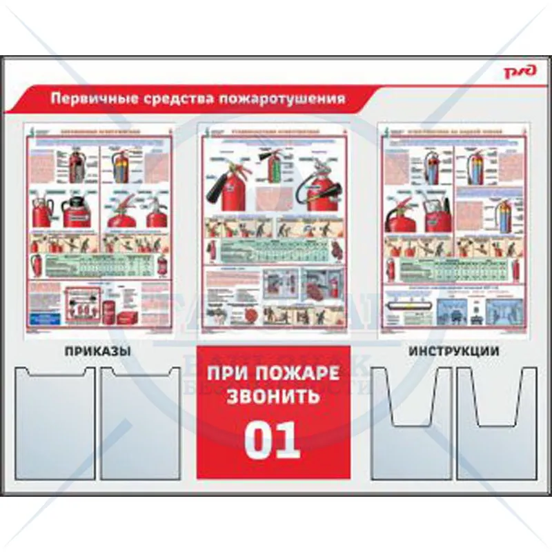 Стенд Работы на высоте для ОАО РЖД, 4 плаката А3, 2 объемных кармана А4 (1050х1205; Пластик ПВХ 4 мм; Алюминиевый профиль)