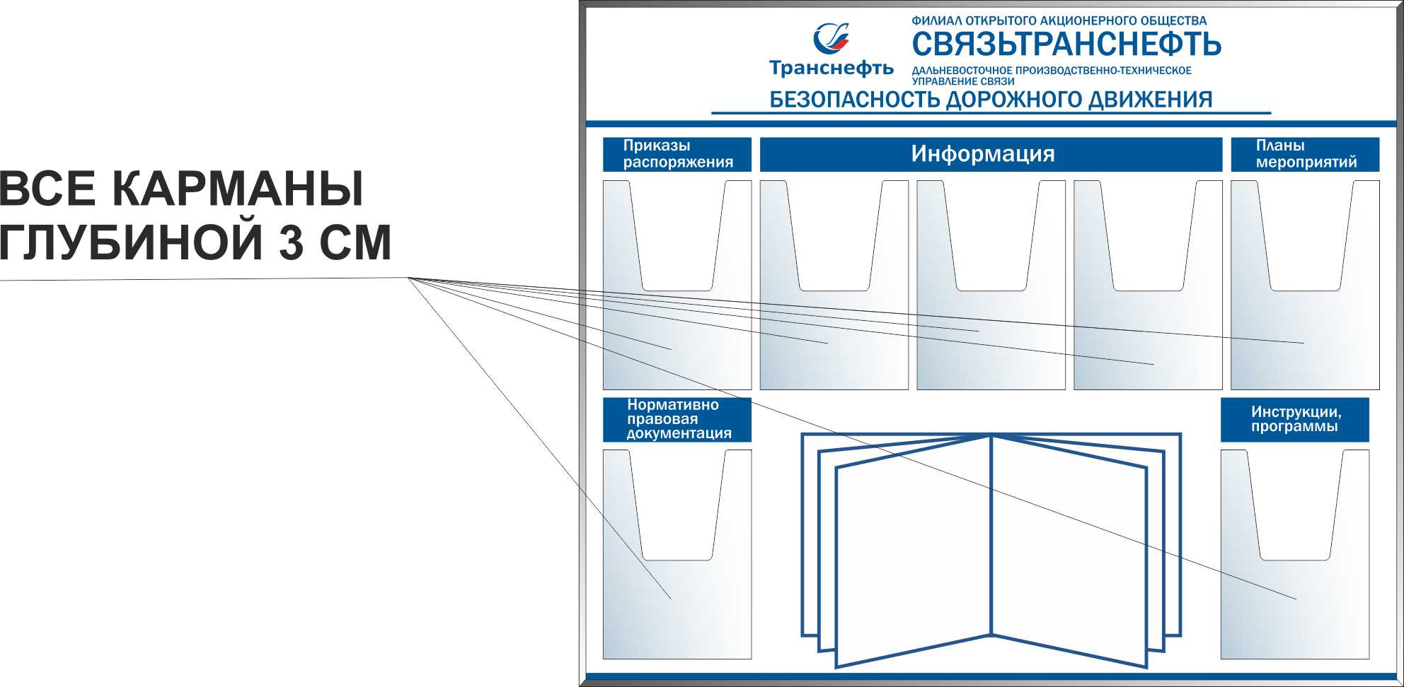 Стенд информационный по БДД (размер 1200*1000 пластик ПВХ 7 карманов А4 глубиной 3см, перекидн. система А4 на 10 рам. ) (ОЛ-СБДД-01 ДВ ПТУС) (1200х1000; Пластик ПВХ 4 мм, алюминиевый профиль; )