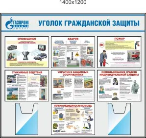 Стенд Уголок Гражданской защиты, 7 плакатов военные знания А3, 2 кармана А4. (1400х1200; Пластик ПВХ 4 мм; Алюминиевый профиль)