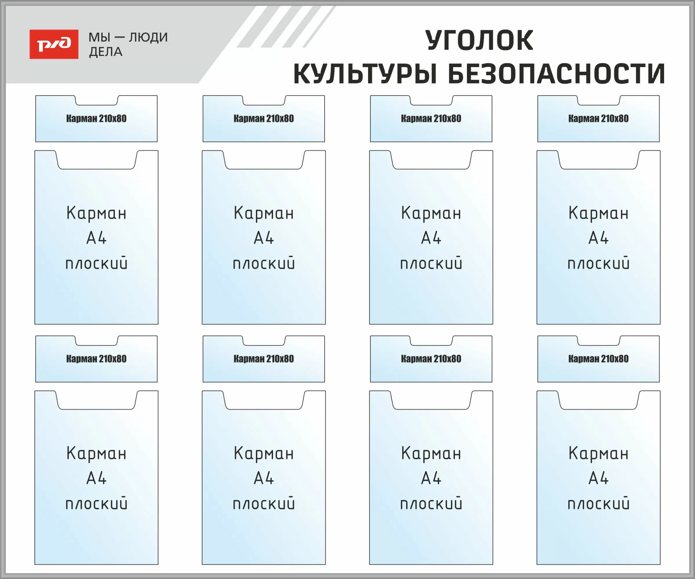 Наполнение: 8 плоских карманов формата А4, 8 плоских 210х80 мм