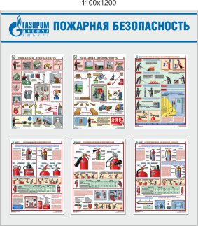 Стенд Пожарная безопасность, 6 плакатов А3 (1100х1200; Пластик ПВХ 4 мм; Алюминиевый профиль)