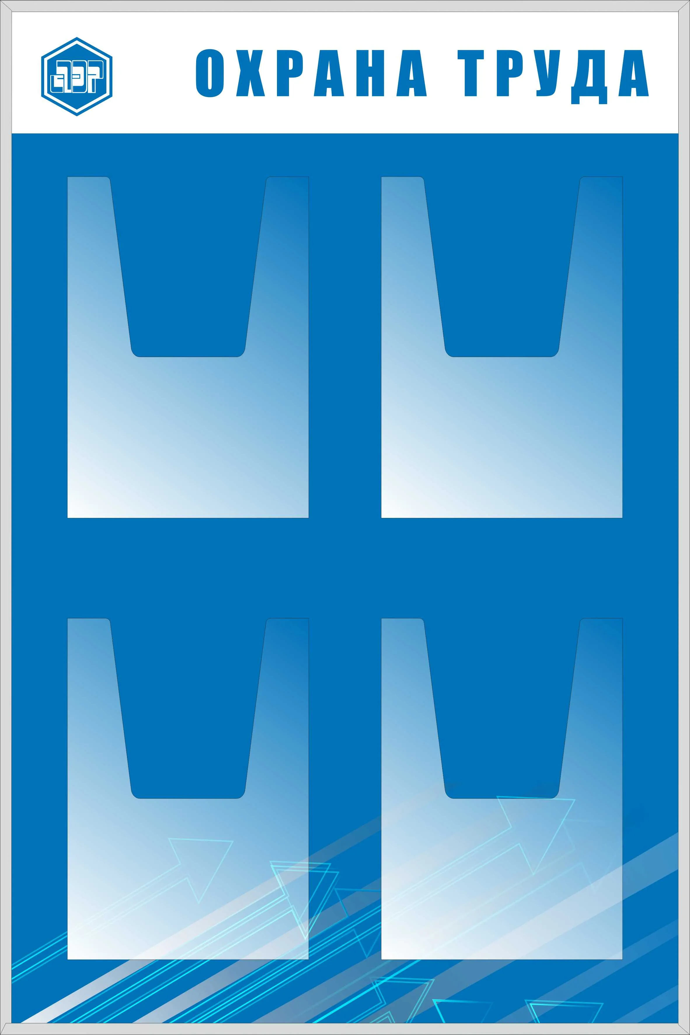 Стенд Уголок охраны труда, карман А4 плоский-5шт, карман А4 объемный-2шт, перекидная система А4 на 10 рамок (1400х1200; Пластик ПВХ 4 мм, алюминиевый профиль; Алюминиевый профиль)