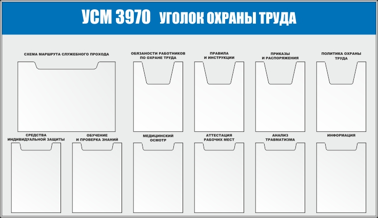 Стенд Уголки по охране труда, 8 вертикальных карманов - А4 ST119 (Пластик ПВХ 4 мм; 1200х1000)