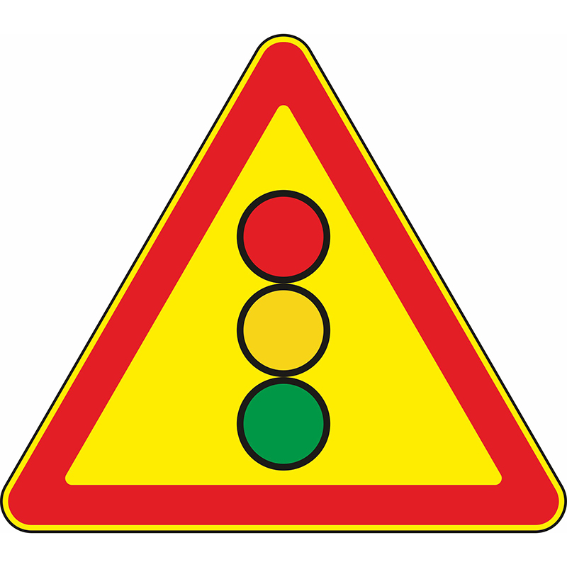 «Светофорное регулирование» устанавливают на время проведения дорожных работ или в других подобных случаях на тех участках, которые приближают водителя к промежутку дороги, регулируемому светофором. Такой знак обычно используют в небольших населенных пунктах. Он предупреждает о том, что впереди — участок проезжей части, движение на котором регулируется светофором. Размещается на расстоянии от начальной точки регулируемого участка: за 50–100 м в границах населенных пунктов или за 150–300 м вне пределов населенных пунктов.