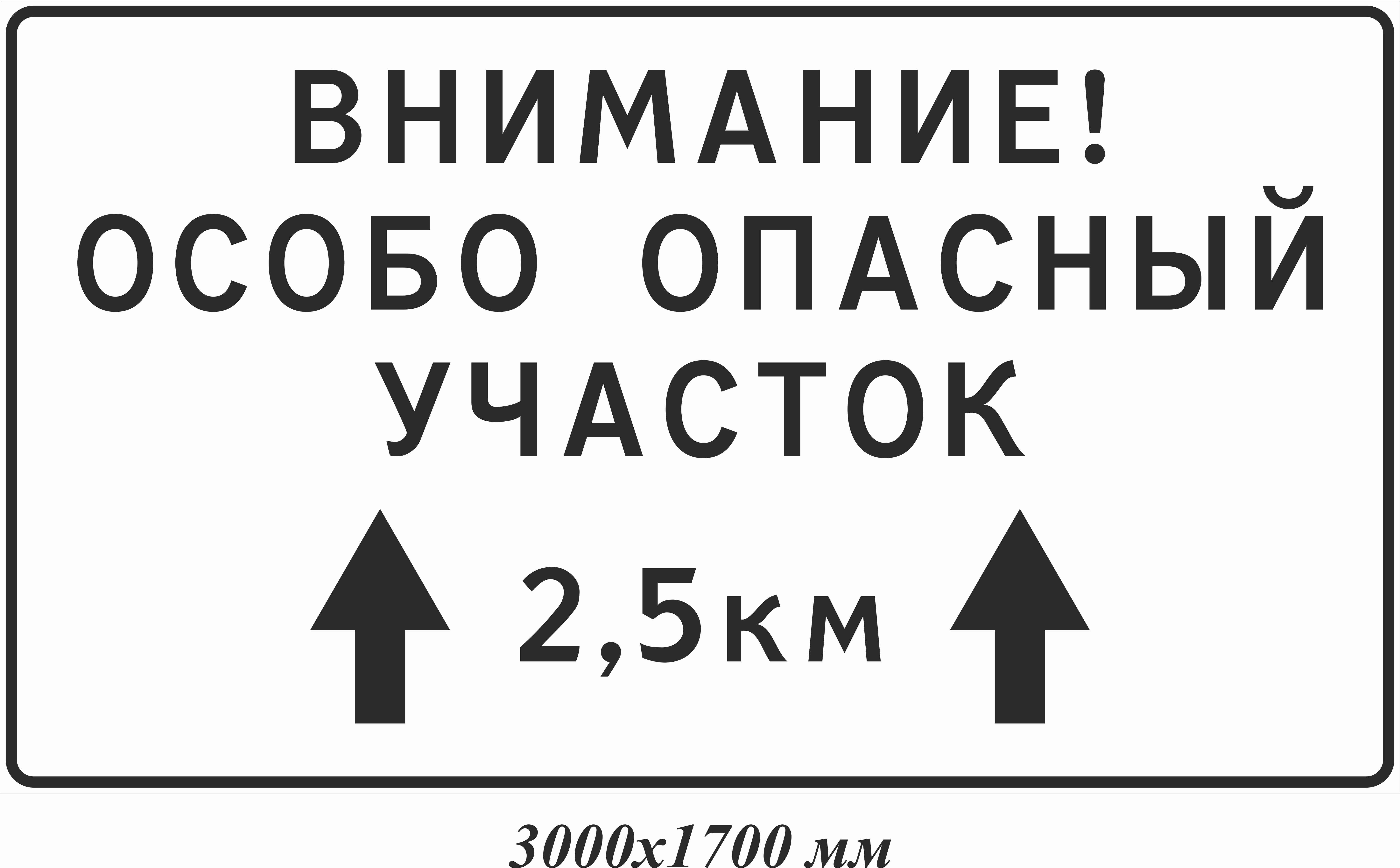 Дор. знак индивидуального проектирования (3 000х1 700, Металл 0,8 мм оц., пленка световозвращающая класса I б, Рама под 3 стойки, ГОСТ 32945-2014)